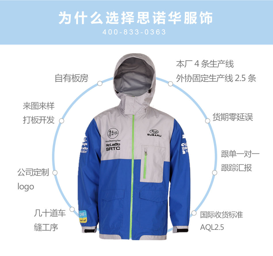睿牛戶外服裝廠家定制沖鋒衣-斯巴魯拉力車隊沖鋒衣團隊服